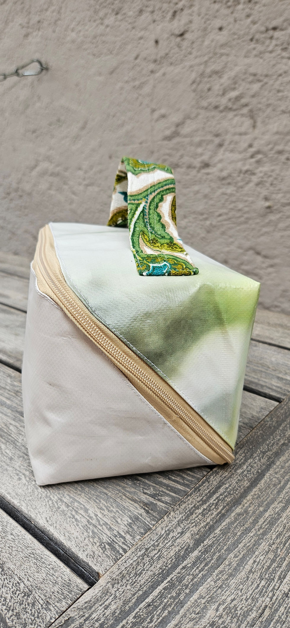 Kostmetiktasche weit aufklappbar Weiß/bunt gestreift